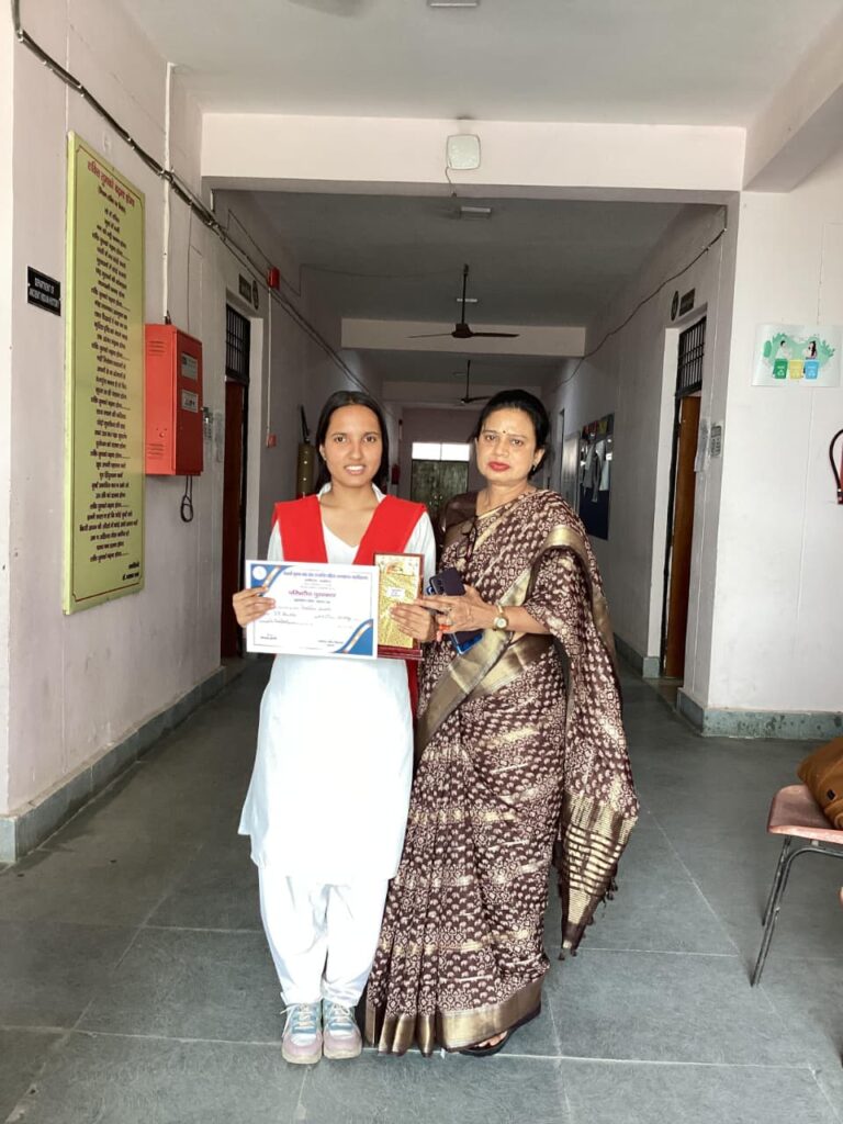 महाविद्यालय द्वारा परिषदीय प्रतियोगिता आयोजन में प्रतिमा शुक्ला ने भाग लिया। प्रतिमा शुक्ला को सोशियोलॉजी परिषद् में कोलाज मेकिंग एवं वाइस प्रेसिडेंट प्रतियोगिता में उत्कृष्ट स्थान मिलने पर छात्रा प्रतिमा शुक्ला को महाविद्यालय की प्राचार्य प्रोफेसर रश्मि बिश्नोई ने दो प्रकार के परिषदीय पुरस्कार 2025-2026 का प्रमाण पत्र एवं नेताजी सुभाष चन्द्र बोस की आकृति का प्रतीक चिन्ह एवं उपहार देकर पुरस्कृत किया।